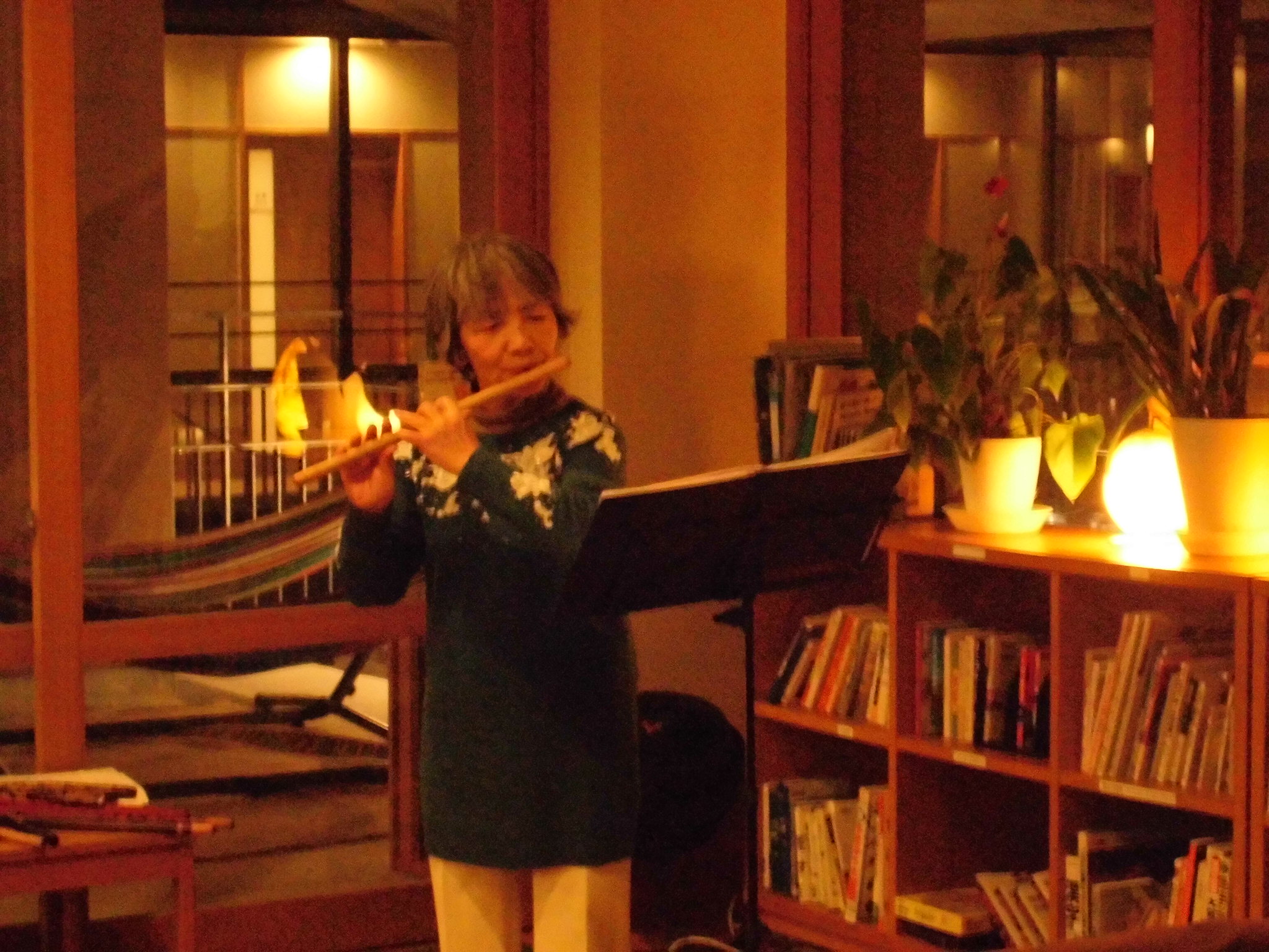 篠笛のオリジナル曲から美空ひばりの「お祭りマンボ」、「アメイジンググレイス」まで幅広い曲で、京都の夜が更けていきました。