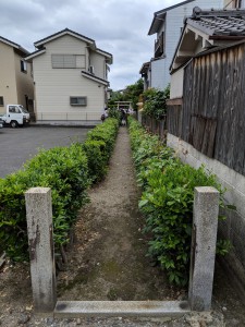 細長い参道の奥に御陵があります。教えてもらわないと気づかない位ひっそりとしていました。