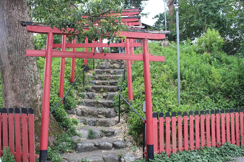 見ての通り古墳の上に稲荷社・富岡大明神が祀られています。古墳の上に登れる貴重な場所ですね。