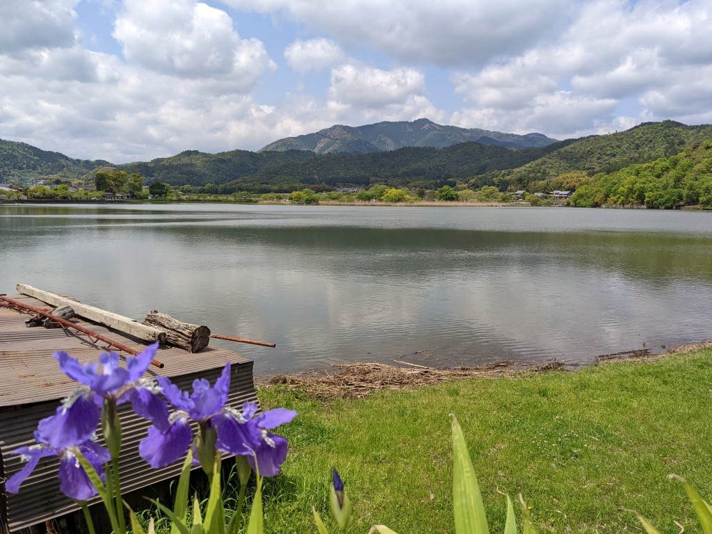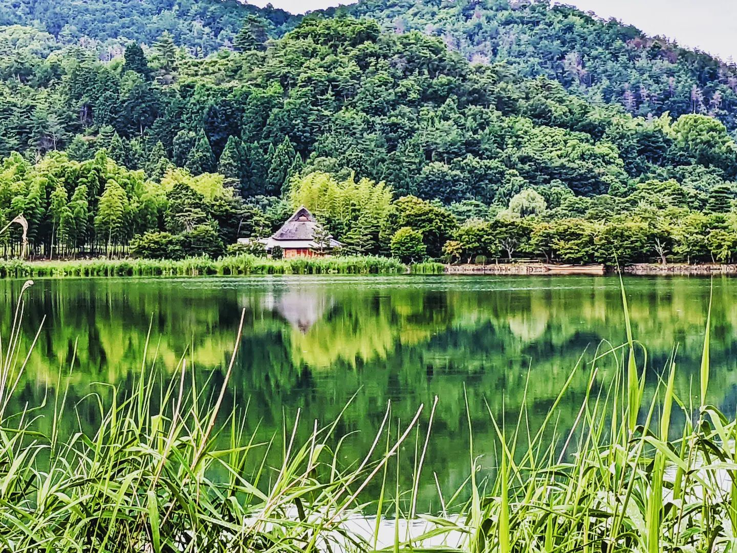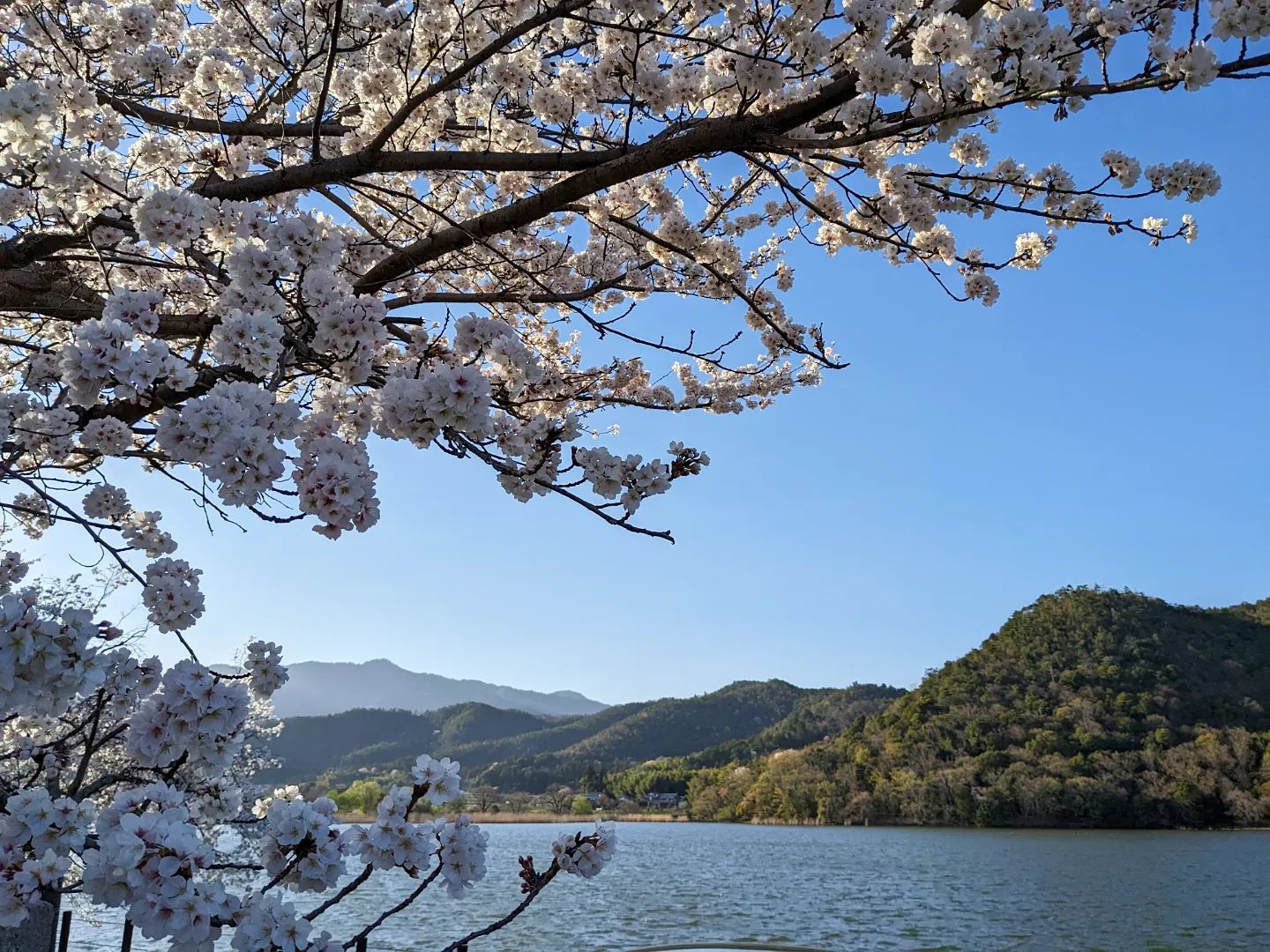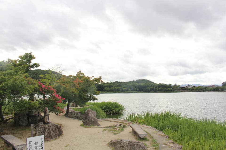 そして植藤造園を後にし、道なりに歩いて行くと突然視界が開け、大きな池「広沢池」が見えてきました。