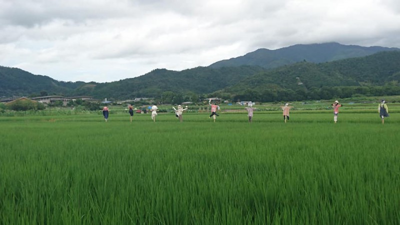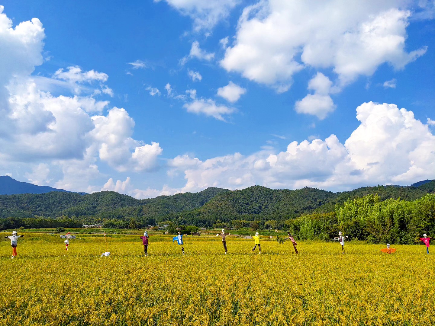 秋は、稲穂にかかしと日本の原風景が広がります。ここ本当に京都市内!?