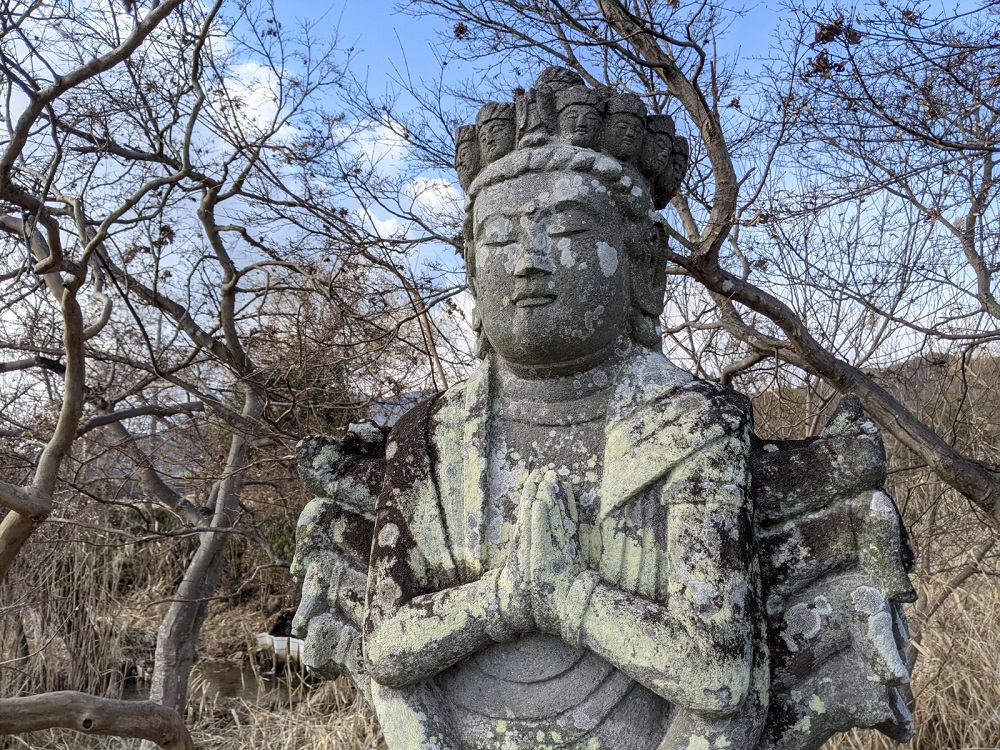 広沢池のほとりには人工で作られた観音島があり、ユニークな千手観音が祀られています。