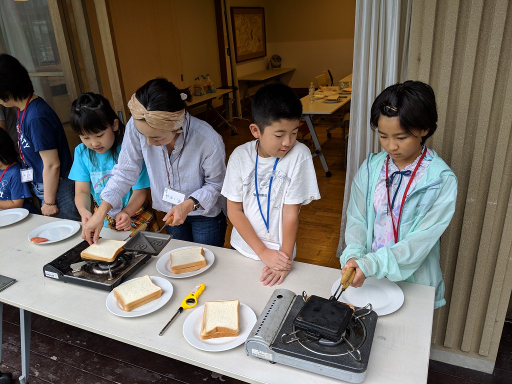 ハムやチーズ、トマト、ジャムやチョコなど好きな具材を挟み火であぶって完成!