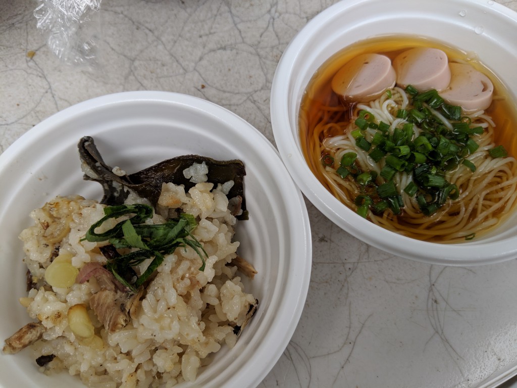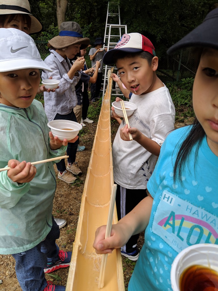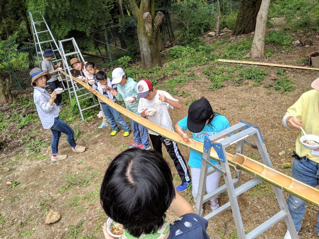 お昼は打って変わって「THE 和食」。流しそうめんと炊き込みごはんです。