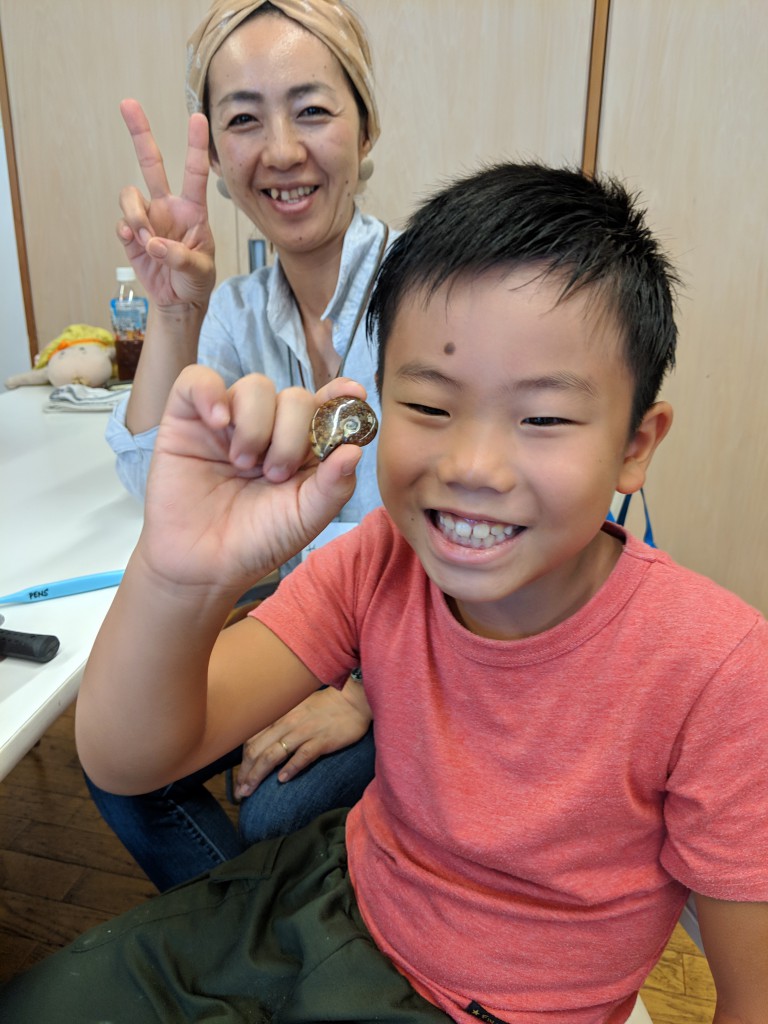 最後は子ども達にお土産をと思い、BBQとは関係ないのですが「50の冒険」にも入っている「化石を探してみよう」を実施。