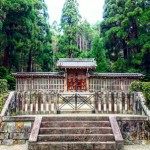 – Mausoleum of Emperor Go-Uda (17): On the road left of the pond, there is an entrance to this mausoleum. In front of it is a pond with Koi fish inside. Taking the right path infront of this checkpoint will lead you up a woody mountain path to Takao.