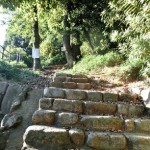 – Bergtreppen (18): Die Strasse, die sie zum Mausoleum bringt, fuehrt ebenfalls zu Bergtreppen. An der Spitze dieser Treppen, befindet sich ein Kleiner Schrein und eine atemberaubende Aussicht auf Kyoto.