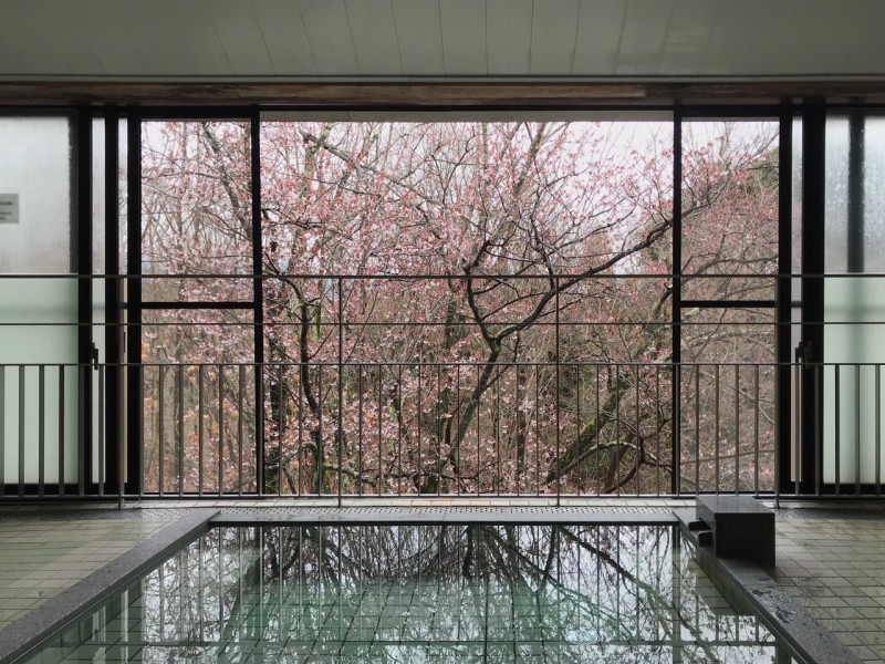 宇多野ユースで一番温かい場所・・・それはお風呂ボイラーの近く(笑) なんと、咲き始めました。 大浴場(特に男性用)から見える桜並木は、毎年本当にゴージャス! これからしばらくは花見湯が楽しめますよ。