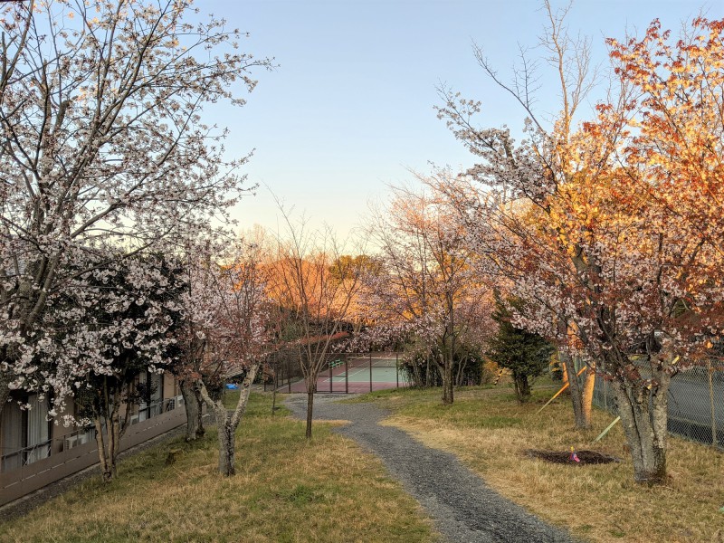 宇多野ユースホステルの桜たちも綺麗に咲き誇っています。 テニスコートに向かう道すがらの山桜や前庭の枝垂れさん。 染井さんと八重さんはまだつぼみですが、 ここ数日でいい感じになるのではと思っています。