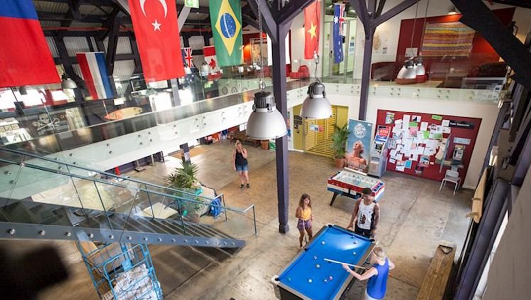 鉄道繋がりで、こちらはシドニー中央駅に隣接するユースホステル。建物は約100年前に建てられ長い間オーストラリア郵便に使用されていた場所を2004年ユースホステルとして改装しました。その「プラットホーム0」があった場所には正にホームに入ってきた客車をイメージした部屋が設置され、すぐ横の透明ガラスの向こう側は実際のホームで行き交う電車が見られます。駅に隣接と書きましたが、ある意味「駅ナカ」のユースホステルです。内部は広い共有スペースと自炊キッチンの他に頻繁に交流イベントが行われてます。宇多野ユースホステルとは勝手に姉妹ユースホステルとして情報交換等しており京都の大学生がインターンシップで活動することもあります。