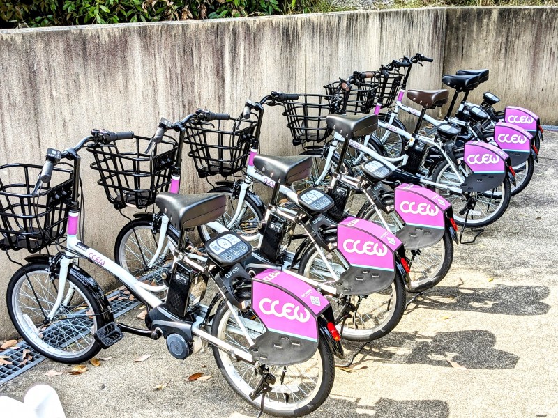 宇多野ユースホステルの駐輪場に、電動アシスト自転車のシェアサイクルサービス「CLEW」を導入しました。