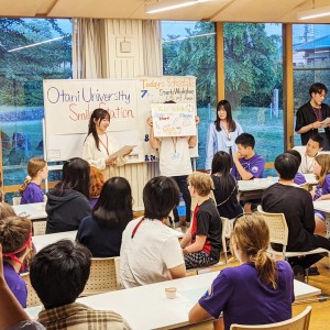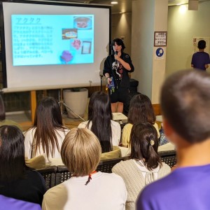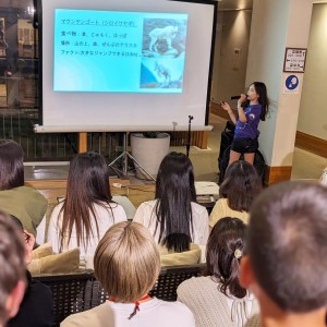 念珠づくり体験のあとは、今度はアラスカの子どもたちから大学生や宿泊者の方へ、自分たちの国や地域の紹介イベントでした。