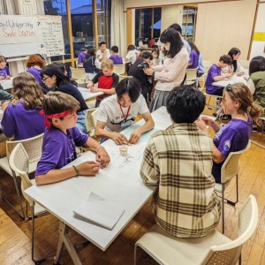 今夜はアラスカから来た小学生グループと京都の大学生との交流イベントがありました。