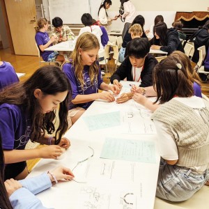 まずは、京都らしく念珠づくり体験を大学生が子どもたちに実施。皆思い思いのカラフルな珠を選び、大学生に教えてもらいながら上手に作ってました。先生方も一緒に体験、早くにできあがったグループはその後も談笑が続きました。