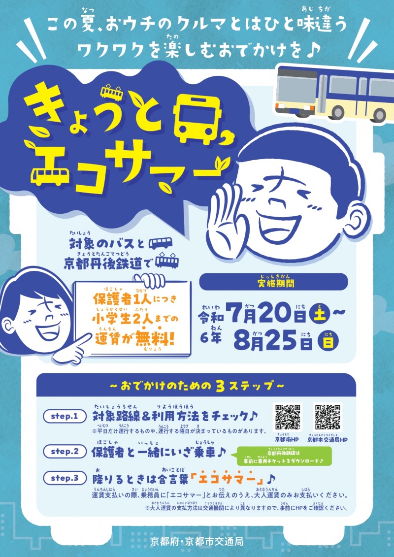 保護者1人につき小学生2人まで無料となる「きょうとエコサマー」が