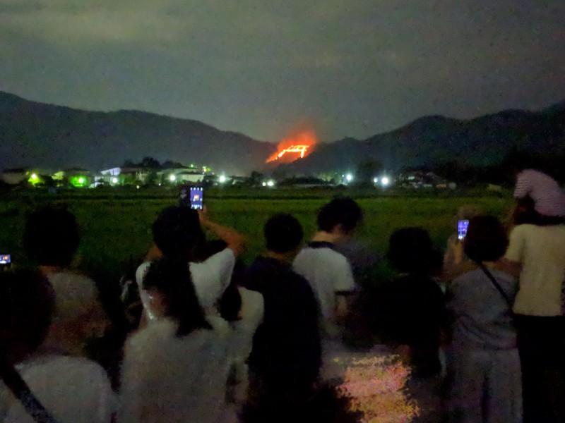 これに合わせて宇多野ユースホステルからスタッフ引率で、五山の送り火の一つ「鳥居形」の送り火を歩いて見に行く鑑賞ツアーを実施いたします。