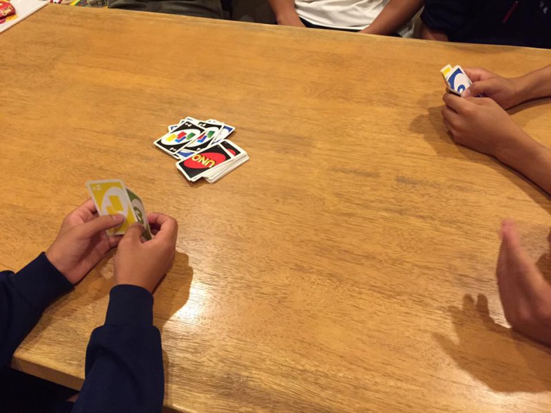 定番のUNOやババ抜き、黒ひげ危機一発やスティッキーというドイツのバランスゲームをしました。