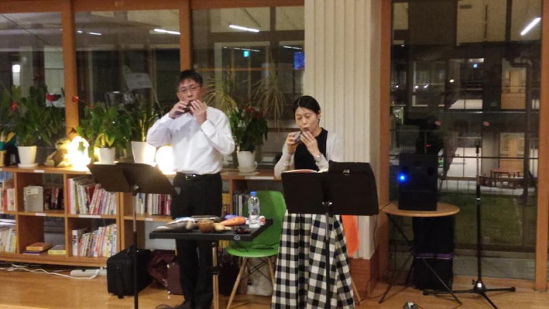 前半は演奏会ですが、後半は実際にオカリナを手に取ってもらい少し練習しての合奏。