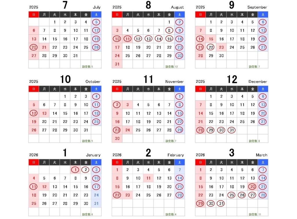 ※繁忙日におきましては別途200円が加算されます。下記カレンダーの〇の日が適応日となります。
