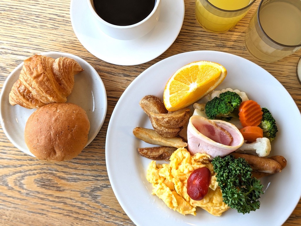- 充実の洋食ビュッフェ: 複数種類取り揃えましたパン、サラダ、シリアル、ドリンク各種は、ビュッフェ形式でお取りいただけます。