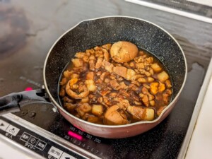 そして、最近では日本でもメジャーになりつつある台湾庶民料理の代表「滷肉飯(ルーローハン)」の試食会。ギリギリまで煮込んでいた豚バラ肉をご飯にのせて出来上がり。