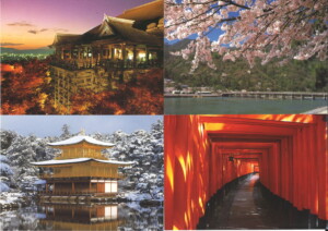 【選べる4種のポストカード】 京都の四季を感じる寺社仏閣の風景、旅の思い出に、あるいは大切な方への便りに、ぜひお役立てください。4つのポストカードのうち1つをプレゼントします。
