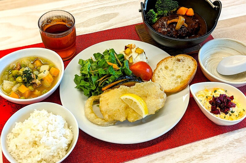 ■あつあつ煮込みハンバーグと、さくさく真鱈フリッターの「京の洋食御膳」